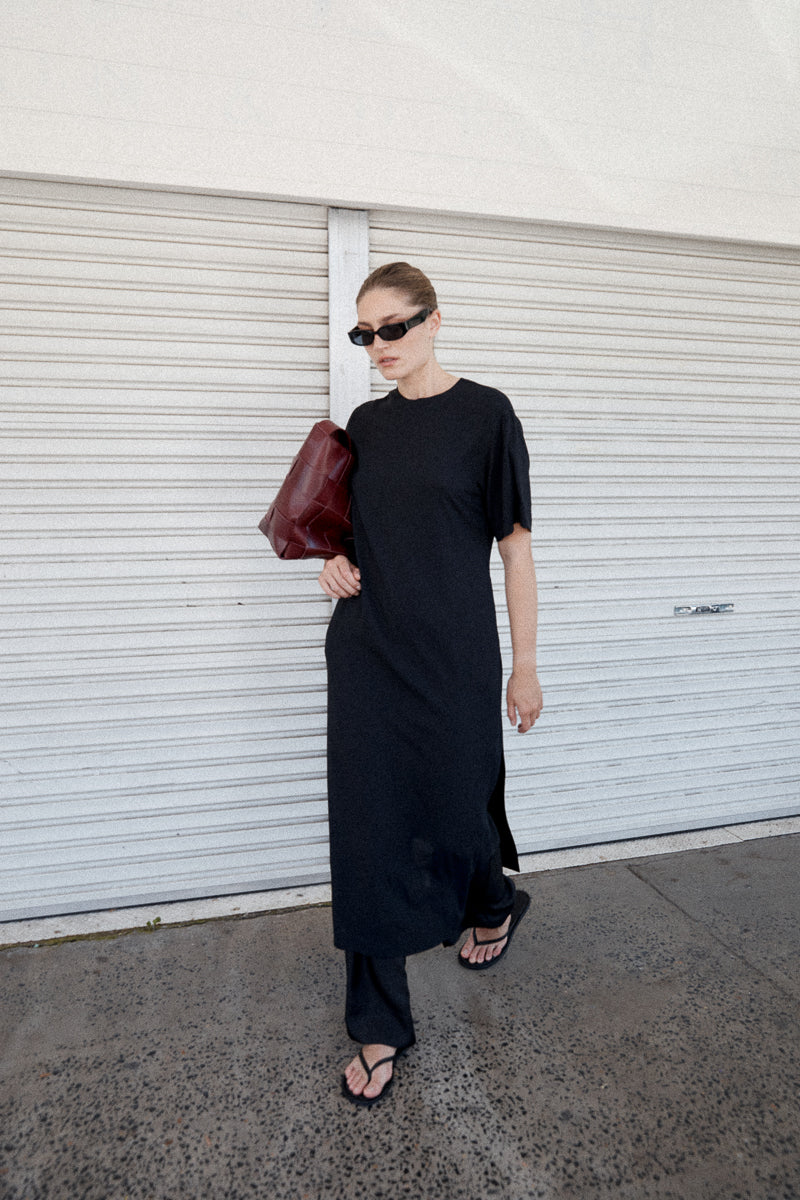 St. Agni is an independent, Australian design studio, founded in Byron Bay. The studio explores contemporary wardrobing through considered design and precise tailoring, that speaks to a minimalist aesthetic. A vision conceived from the idea of designing functionally refined pieces that exist in the space between progressive contemporary and nonchalance, St. Agni has seen a natural evolution from handwoven leather accessories to premium ready-to-wear. Since its conception the studio lives by the philosophy of ‘less is more’, keeping versatility and longevity at the forefront of decision making. The collections are underpinned by the appeal of a modern uniform, offering an ever-evolving style of wardrobing. St. Agni blends timeless silhouettes and considered detailing, with an emphasis on exceptional fabrics and supply chain transparency. St. Agni was founded by Lara and Matt Fells.